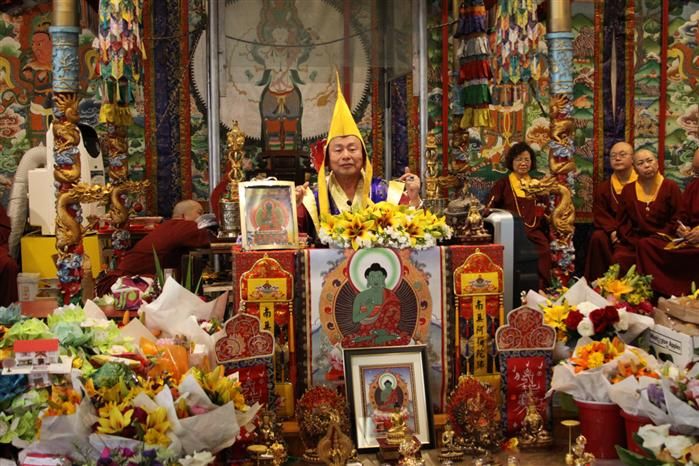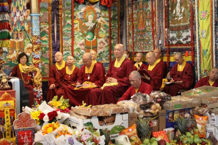 Pertama-tama, kita sembah sujud pada Bhiksu Liaoming, sembah sujud pada Guru Sakya Dezhung, sembah sujud pada Gyalwa Karmapa XVI, sembah sujud pada Guru Thubten Dhargye, sembah sujud pada Triratna Mandala, sembah sujud pada adinata homa hari ini Buddha Amoghasiddhi di Utara.